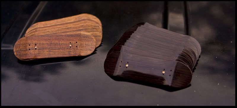 See what I said about the lacquer? Look at those decks, they look like looking into a crystal clear pool of water. Amazing. These decks are mad genius, which have two (2nd and 4th I believe) plies of carbon fiber in them. Which, as you'll know if you've ever skated a carbon fiber skateboard deck (old element fiber lights anyone? Ahh.. those were good. Now element suck..), they're insanely light, but with soo much pop, and really really strong. I've always wanted to try one, and, yea, these decks are going to flatface, so I really hope I can pick one up!