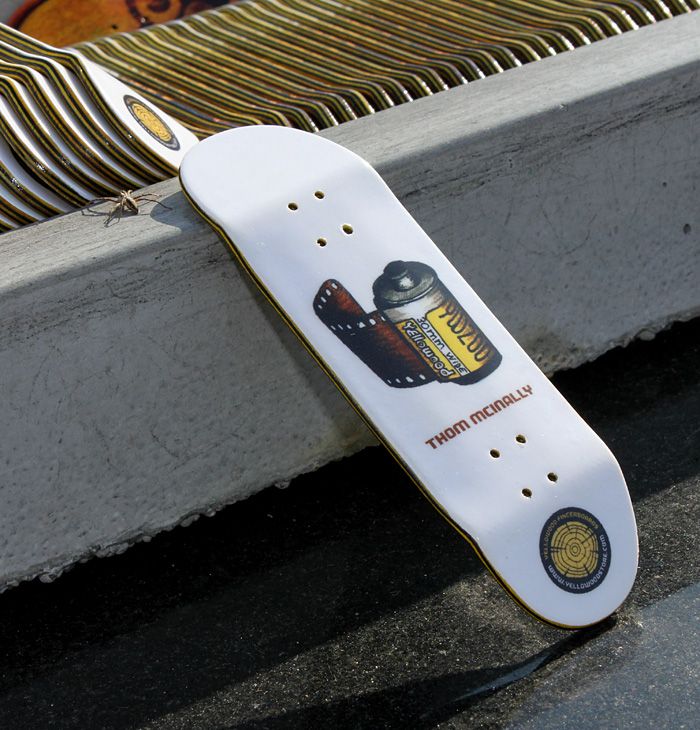 Rad stuff, Thom's graphic looks absolutely amazing! He's a graphic designer and loves photography, so the roll of film is a great way to have a graphic to him. Its simple too, I think its definitely one of my favourite graphics Yellowood make! Little details too, like rather than the film size on the film it says 30mm wide. I want! There are a bunch of decks, including this, in stock on Yellowood now, so go get them before they're gone!